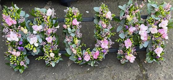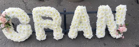 The funerals letters shown are an example of the service we provide. Each customer requirements are specific to the flowers and colours selected by the customer. Each letter is produced at a cost of £50.00 for each letter.
