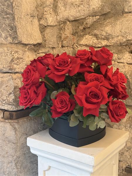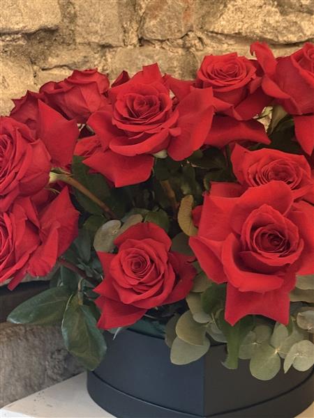 Our 24 red rose hatbox is a bold burst of romance in a box. it's packed with gorgeous red velvety roses. it's luxurious, dramatic, and just the right amount of cheeky. the perfect way to make hearts flutter.